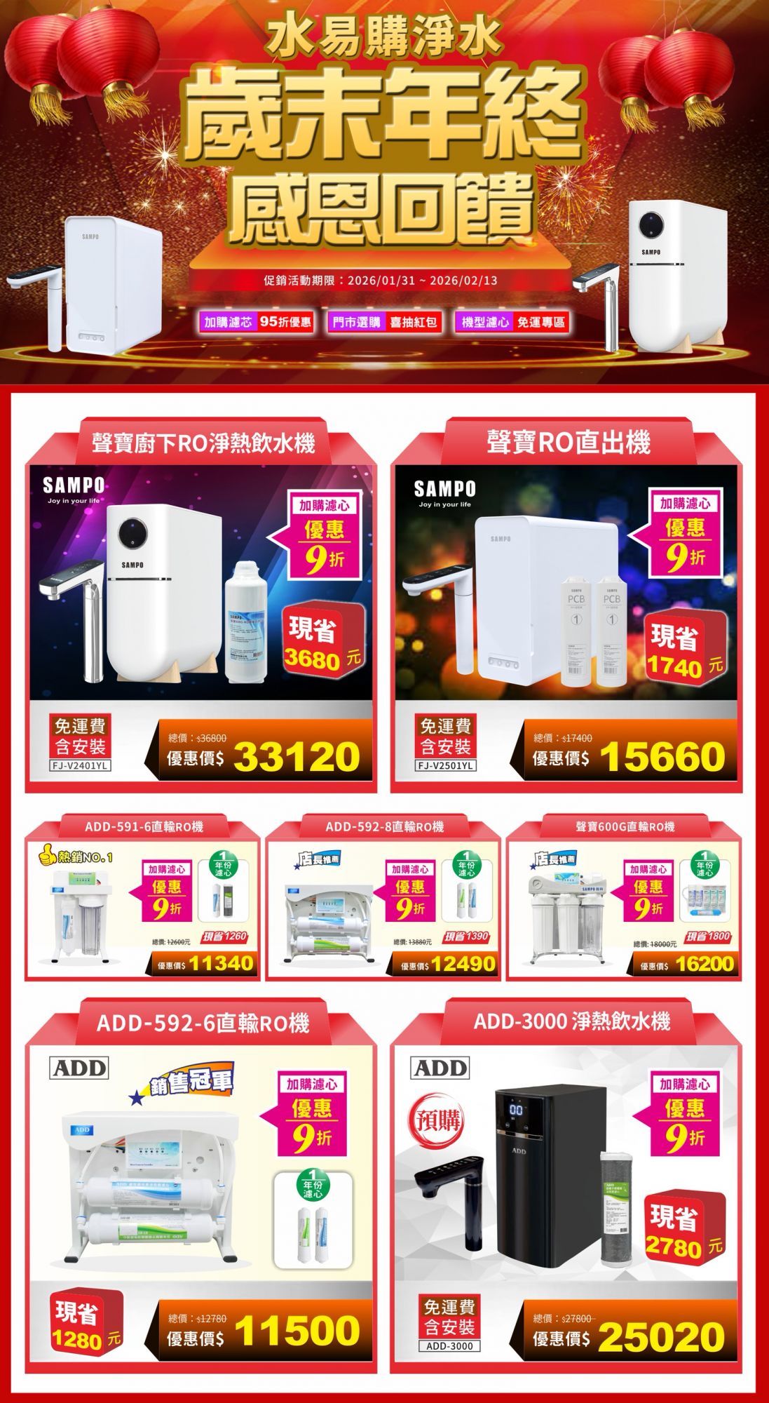 加購濾心,來店想抽紅包9折起優惠 最大獎免單