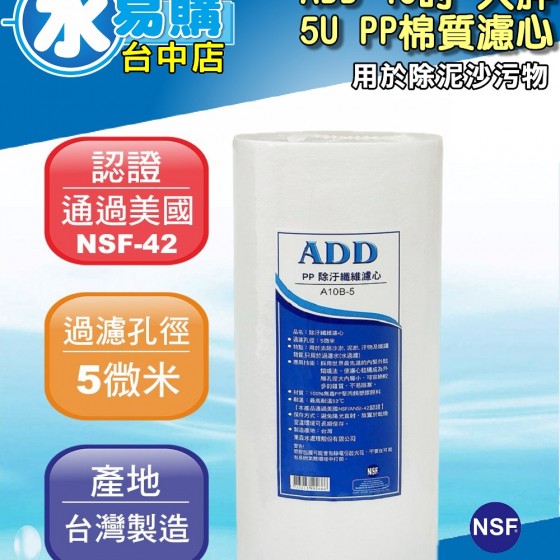 ADD-PP棉質濾心 大胖10英吋5微米 《台灣製造 》