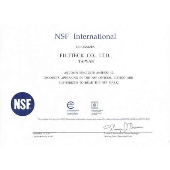 美國國家衛生基金會 (NSF) 產品國際認證的取得,是證明鴻維公司對產品的用心。鴻維科技公司為台灣半導體工廠及光電過濾器工廠唯一指定使用專業濾心之製造工廠,如奇美、華映、台灣啤酒、可口可樂...其專業程度已與美國並駕齊驅,目前月產量達60萬支,行銷全世界。