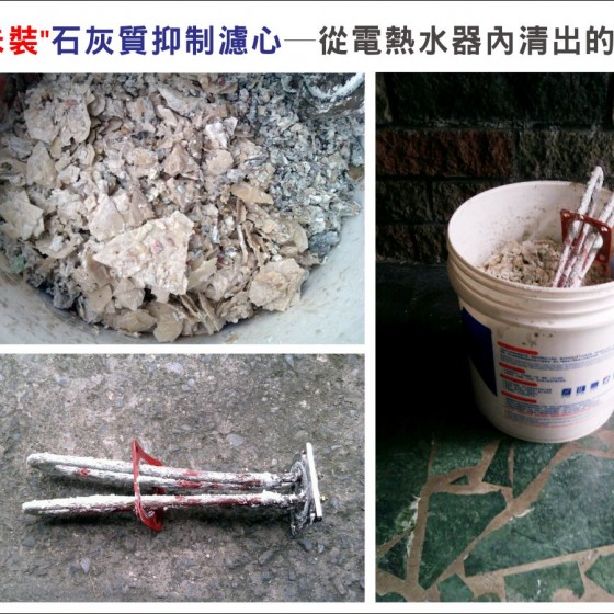 水源經過此產品中濾心過濾後,此濾心中的覆磷酸鹽(食品添加物原料)會慢慢溶解溶解於水中,經過獨家專利設計結構,使其原料定量慢慢釋出混合於水源中,過濾後可抑制煮沸後容易產生的水垢形成,也可抑制水中過多的鐵離子氧化造成的鐵銹色,也可保護水中的管避避免氧化腐鏽,也會慢慢清除已經結垢的鐵銹或者水垢,使水管更暢通,以及減緩青苔的生長