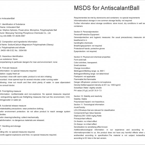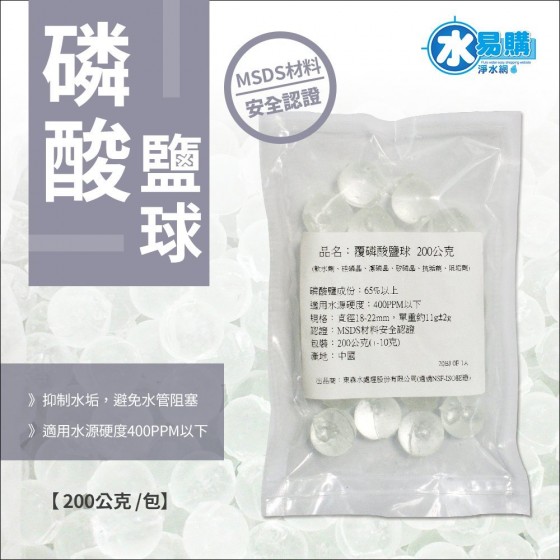 1.覆磷酸鹽球會隨著水流動慢慢溶解溶解於水中,可抑制煮沸後容易產生的水垢形成,也可抑制水中過多的鐵離子氧化造成的鐵銹色,也可保護水中的管避避免氧化腐鏽,也會慢慢清除已經結垢的鐵銹或者水垢,使水管更暢通,以及減緩青苔的生長