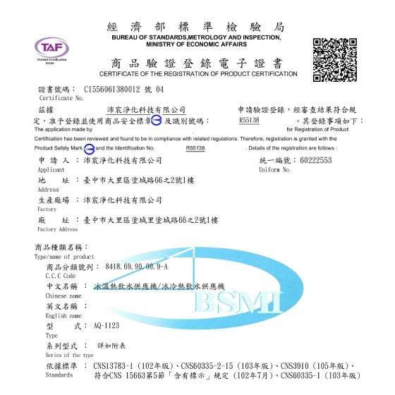 品名:沛宸牌落地型觸控式飲水機(三溫冷熱交換型)