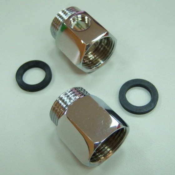 如圖 2個為一組,常用於各式淨水器於接冷熱混合水龍頭分水三通用途