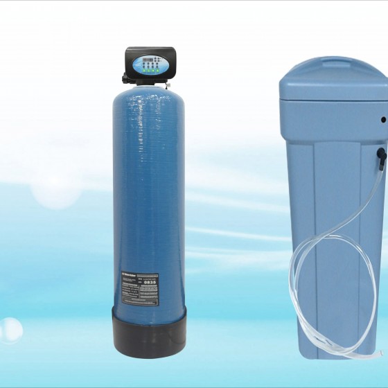 原理:樹脂軟化器是採用離子交換原理,去除水中鈣、鎂等結垢離子或者水中正電離子,由控制器、樹脂罐、鹽罐組成的一體化設備。其控制器自動沖洗控制器,可自動完成軟水、反洗、再生、正洗及鹽業箱自動補水全部工作的迴圈過程。鹽罐主要裝備鹽用於樹脂飽和後的再生。