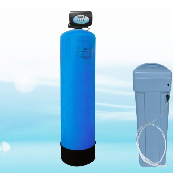 原理:樹脂軟化器是採用離子交換原理,去除水中鈣、鎂等結垢離子或者水中正電離子,由控制器、樹脂罐、鹽罐組成的一體化設備。其控制器自動沖洗控制器,可自動完成軟水、反洗、再生、正洗及鹽業箱自動補水全部工作的迴圈過程。鹽罐主要裝備鹽用於樹脂飽和後的再生。
