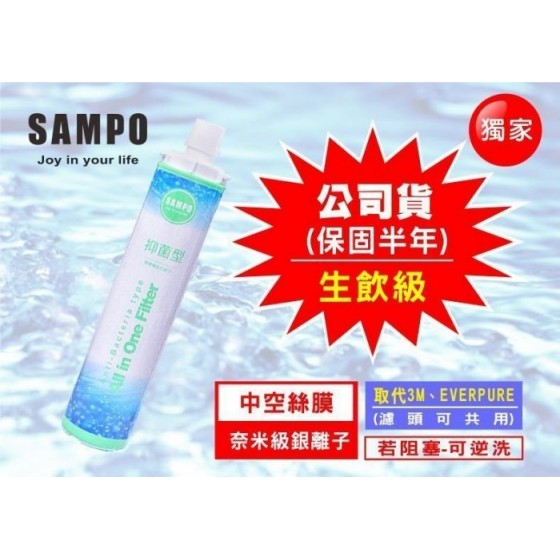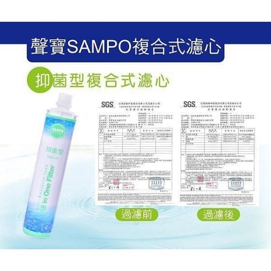 聲寶複合式濾心針對台灣高濁度的水質而設計,採用過濾孔徑細小達0.1微米的中空絲膜,比Everpure與3M的0.5微米更精細過濾更乾淨更安全,此款為《生飲級濾心》適用地下水或自來水水源。