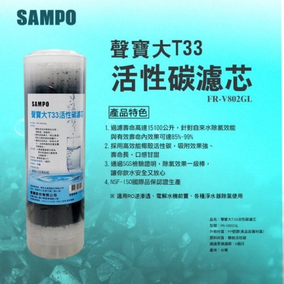 聲寶牌《SAMPO》大T33活性碳濾芯
