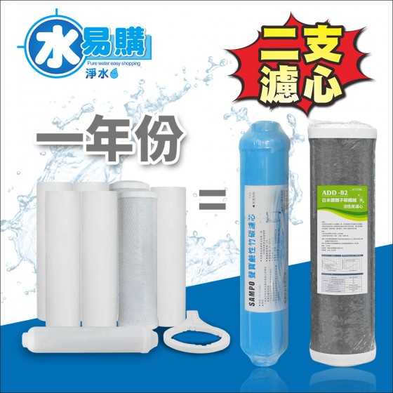 【水易購淨水】*RO一年份濾心*ADD-B2銀離子碳纖維濾心+聲寶牌鹼性竹碳濾芯(一年只需2支)