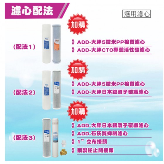第二道:ADD石灰質抑制濾心《10型》可抑制水垢+銅製逆止閥+1英吋立布 $2150