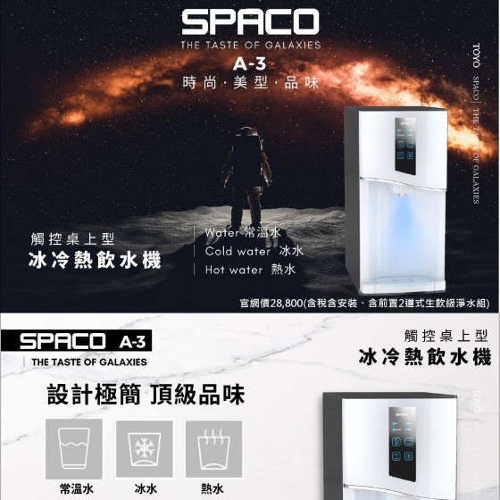 TOYO_SPACO A-3 冰冷熱飲水機/觸控桌上型【水易購台中店】