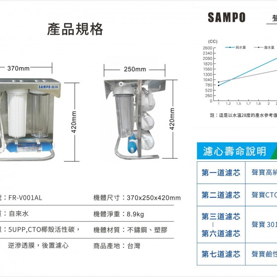 聲寶 FR-V001AL 直輸機 RO機 免插電 免儲水桶 世界首創 7道過濾 NSF 免安裝【水易購台中店】