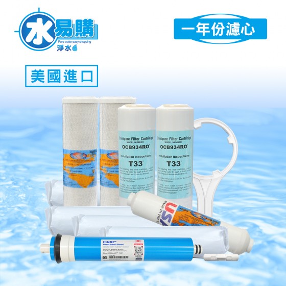 美國進口RO逆滲透一年份濾心10支組合(含RO膜)【水易購台中店】