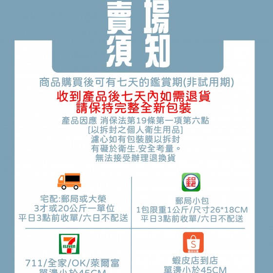 產品因應 消保法第19條第一項第六點-[以拆封之個人衛生用品]